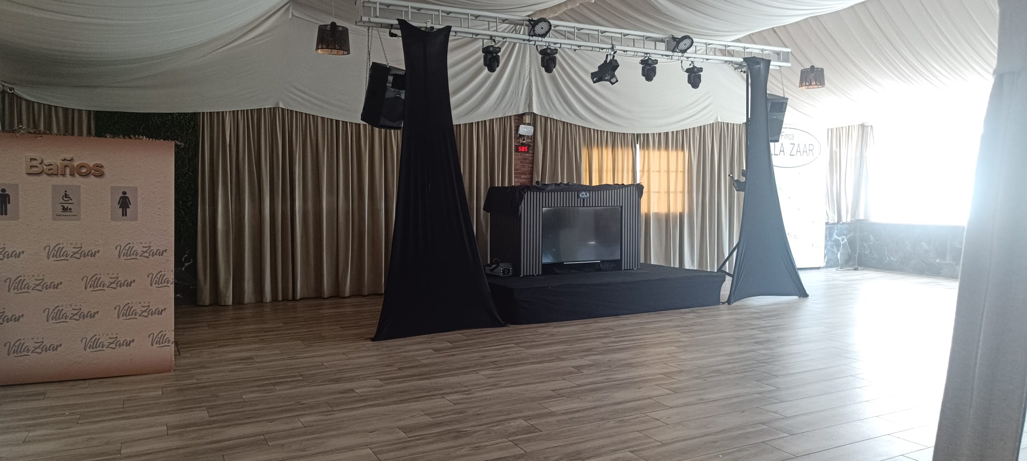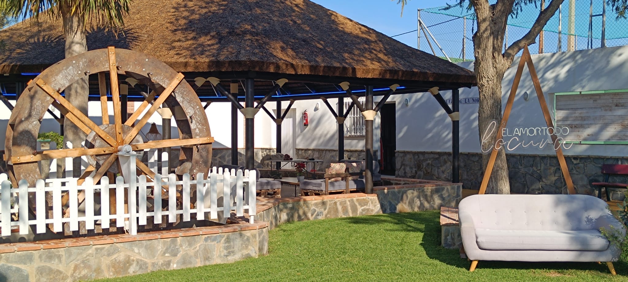 Finca Villa Zaar dispone de un gran salón climatizado de 400 m2 con fuente de piedra y amplios jardines. Un espacio lleno de detalles y encanto que lo hace un escenario único. Su versatilidad permite decorarlo completamente a vuestro gusto, tal y como siempre lo habéis soñado.